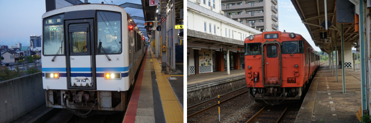出雲市駅の終電19:11発・益田駅22:28着が移動可能距離/日。